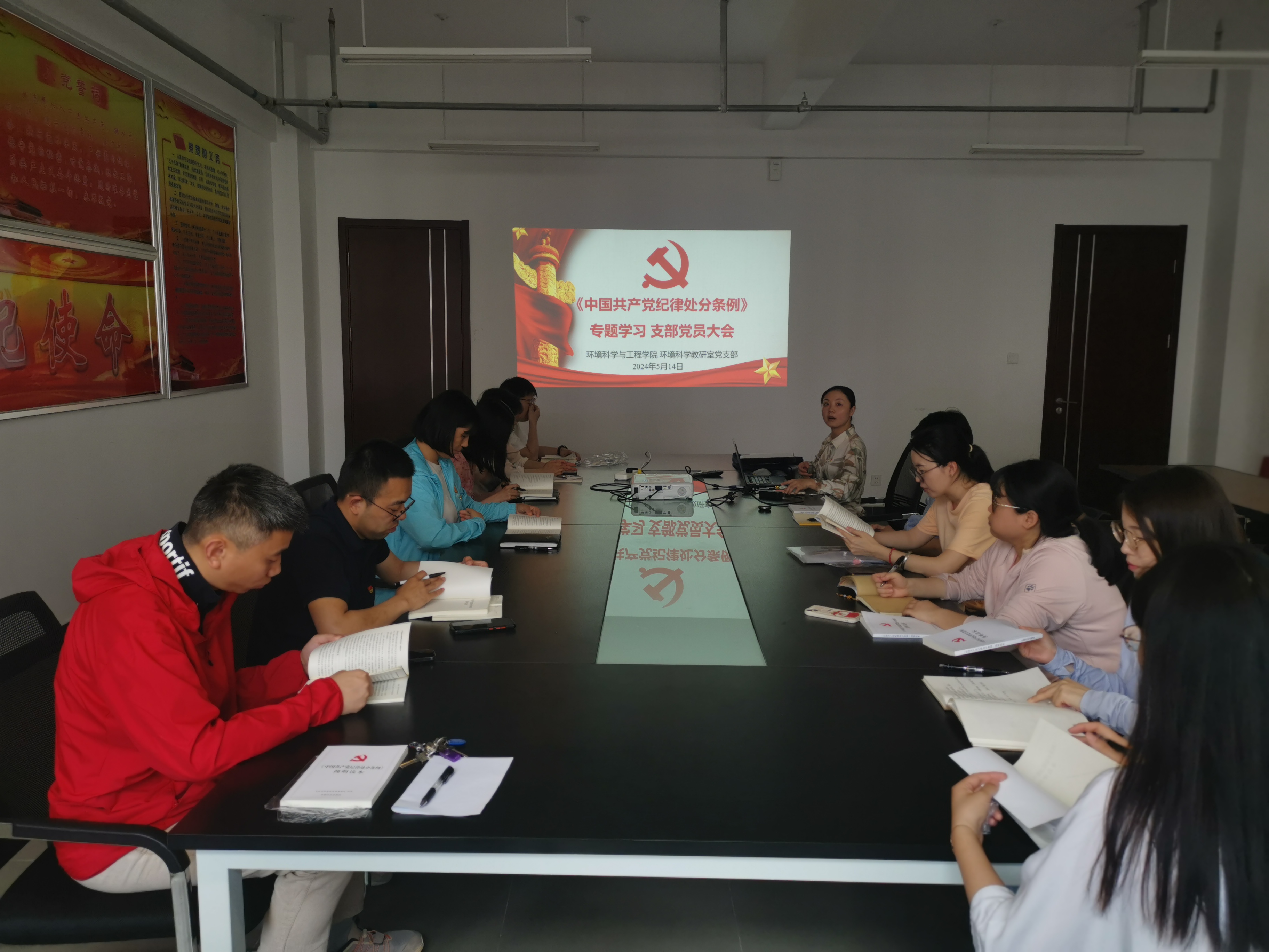 为深入推进党纪学习教育,进一步加强党员纪律建设,严明纪律作风,推动党员干部自觉遵守党的纪律规定,5月14日,aa3044永利集团环境科学教研室党支部召开了支部党员大会,集中学习了新修订的《中国共产党纪律处分条例》(以下简称《条例》)。本会议旨在引导党员教师深入学习领会新修订的《条例》的重大意义,准确把握其精神实质,做到学纪、知纪、明纪、守纪。会议由支部书记丁晓雯主持。