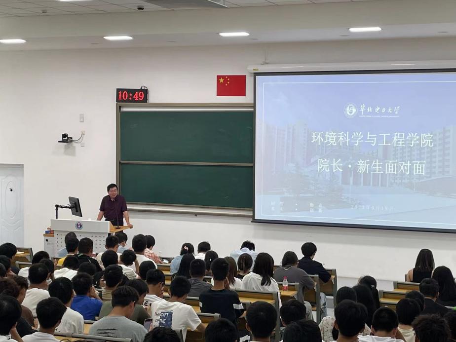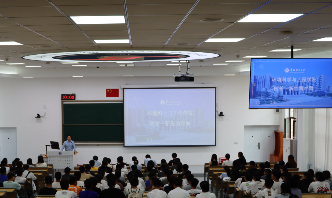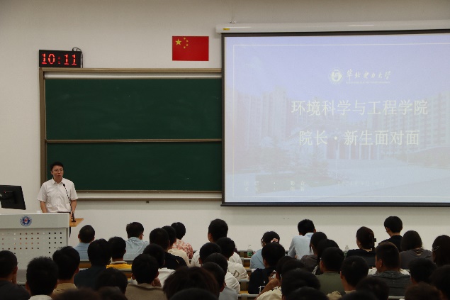 会议伊始,薛明磊代表学院对全体新生表示欢迎和祝贺,他从学院的发展历史和历届学风两方面回顾了环境学院的学院院史和人才培养史;并围绕努力学习、人身安全、人际交往和心理健康四个方面对新生提出了要求和期待。