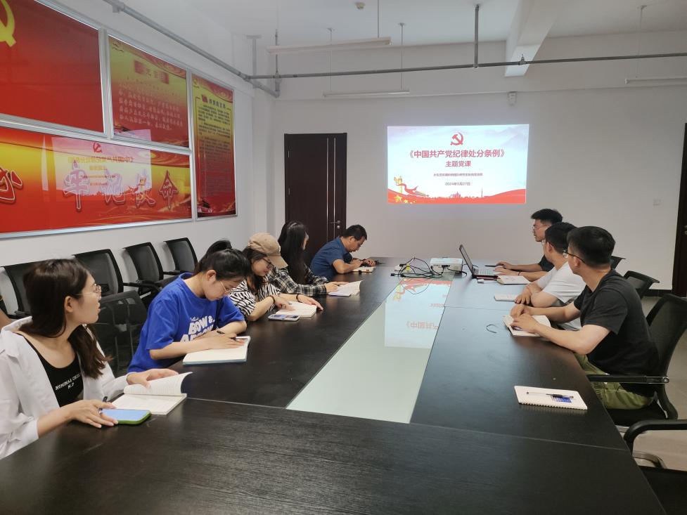 为深入贯彻落实全面从严治党要求,进一步加强纵向党支部的组织建设,引导支部党员把纪律规矩转化为政治自觉、思想自觉、行动自觉,5月27日晚,水生态科研团队研究生纵向党支部在G631会议室召开了学习新修订的《中国共产党纪律处分条例》(以下简称《条例》)主题党日活动,支部书记张泽贤主持会议,支部全体党员及发展对象共同参加,党委组织员郑如秉列席参加活动。