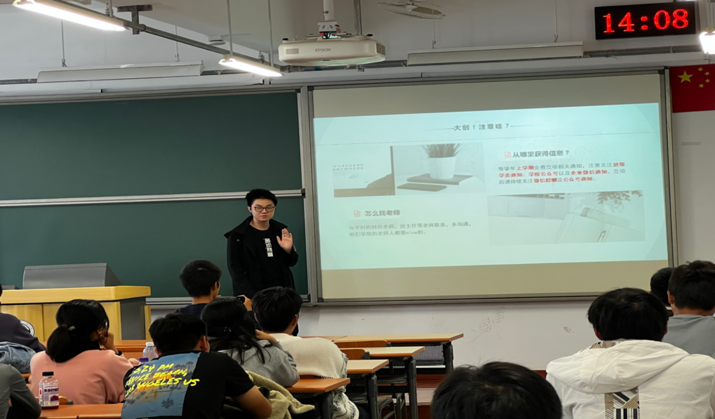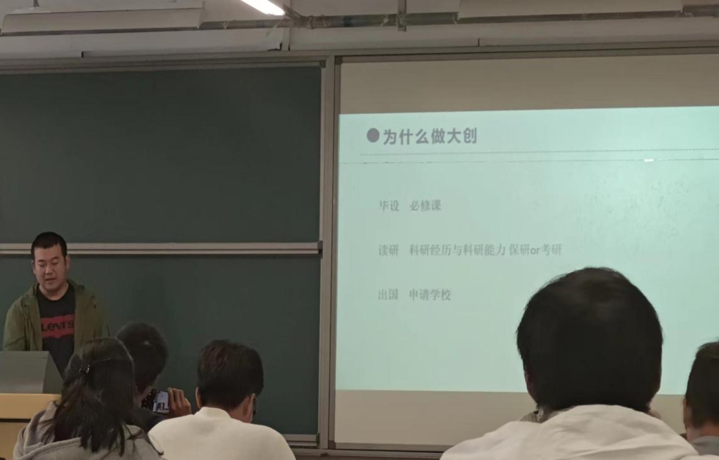 应化2002李学东首先向大家阐述了大创项目对自身毕设、读研等的重要意义。接着,依托于自身经历,为大家系统分析了大创项目推进的主要步骤以及相关细节,其中强调了导师科研方向与大创方向相契合的重要性,同时鼓励大家积极踊跃的参与到大创研究的活动当中来。