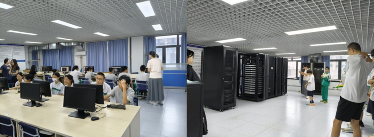 在计算化学实验室,同学们化身“分子设计师”,使用专业软件搭建并优化硫化物电解质等模型。在实验室研究生的指导下,通过旋转、缩放分子结构,同学们直观理解键长、键角与材料性质的关系,参观高性能计算集群时,切实体会到数字化工具在减污降碳技术创新中的关键作用。