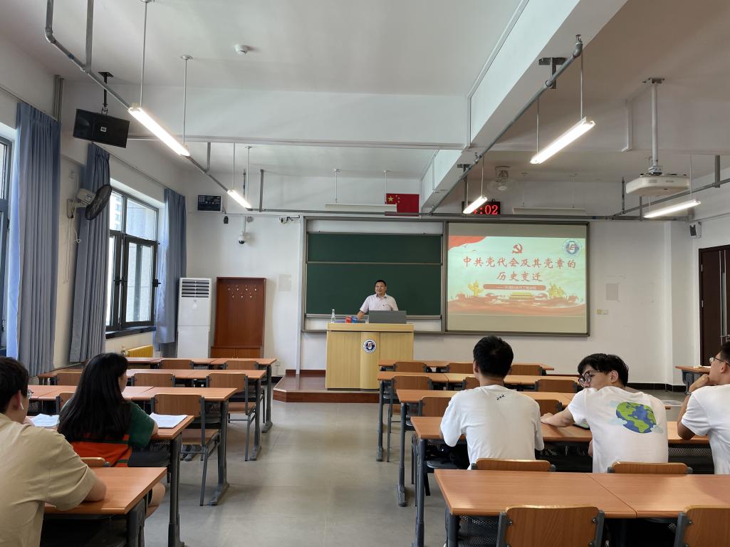 5月29日,学院党委副书记薛明磊为学生党员代表进行了党章知识和入党誓词的教学。薛明磊以时代演变为线索,向同学讲述了党章和入党誓词的历史变迁。