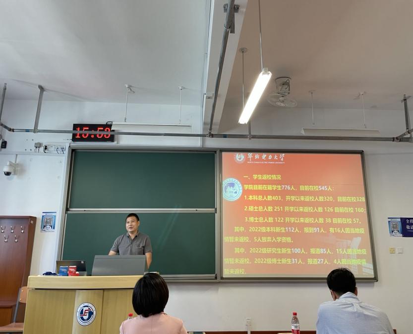 会议还开展了2022年秋季学期疫情防控开展全体教职工健康安全教育活动。针对疫情防控工作,学院党委副书记薛明磊在会上通报了学生返京返校以及沙河校区学生相关情况,一是学生返校情况,二是沙河院区情况。三是疫情防控情况。薛明磊希望广大班主任与研究生导师多关心同学们日常学习生活,遇到紧急情况及时向学院汇报,做好心理疏导,有效保障同学们防疫健康与学习课业共同推进。