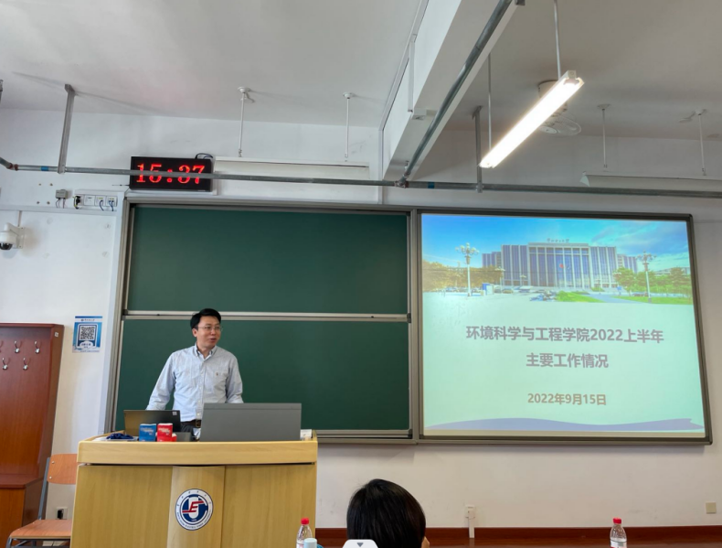 学院院长汪黎东就学院上半年学院人才引育、教学科研等重点工作情况向全体教职工进行工作介绍。2022年是学院固本开新的关键一年,面对新冠疫情大考,在全院师生的共同努力下,学院防疫与教学科研工作两不误,进一步推进学院“双一流”建设。一是重点推进一流师资建设。二是持续推进一流科技创新。三是学院大力推进一流学科建设。四是学院继续推进一流人才培养。五是学院全力推进一流教风学风建设。最后,他表示, 相信2022年下半年,在全院教职工上下齐心、锐意进取、干事创业、积极上进的工作氛围中,为学校“双一流”建设交上一份合格答卷。
