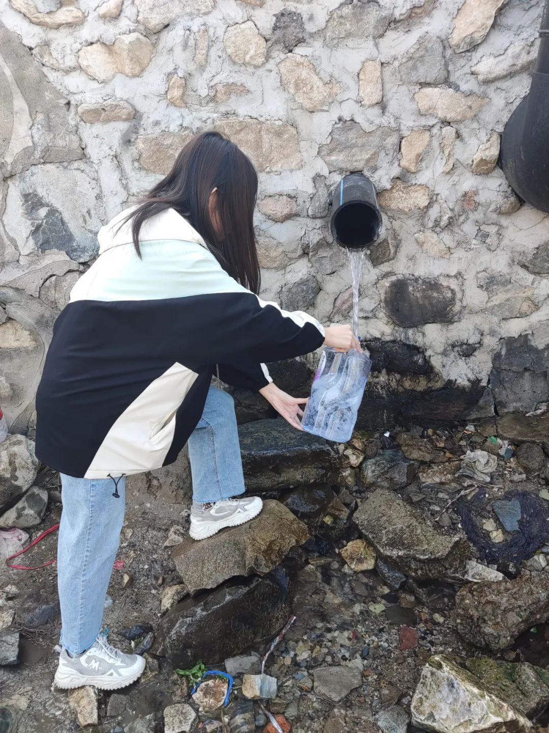 此外,古将村黄书记向大家介绍了未来关于旅游研学的设计构想,以及关于古将村“非遗”豆腐厂房的设计规划,包括设施建设以及村容村貌提升等方面的部署。在古将村水泉,同学们在aa3044永利集团党委组织委员郑如秉老师的带领下用容器收集了部分水样,以便返回学校后在实验室对古将村水质进行检测。