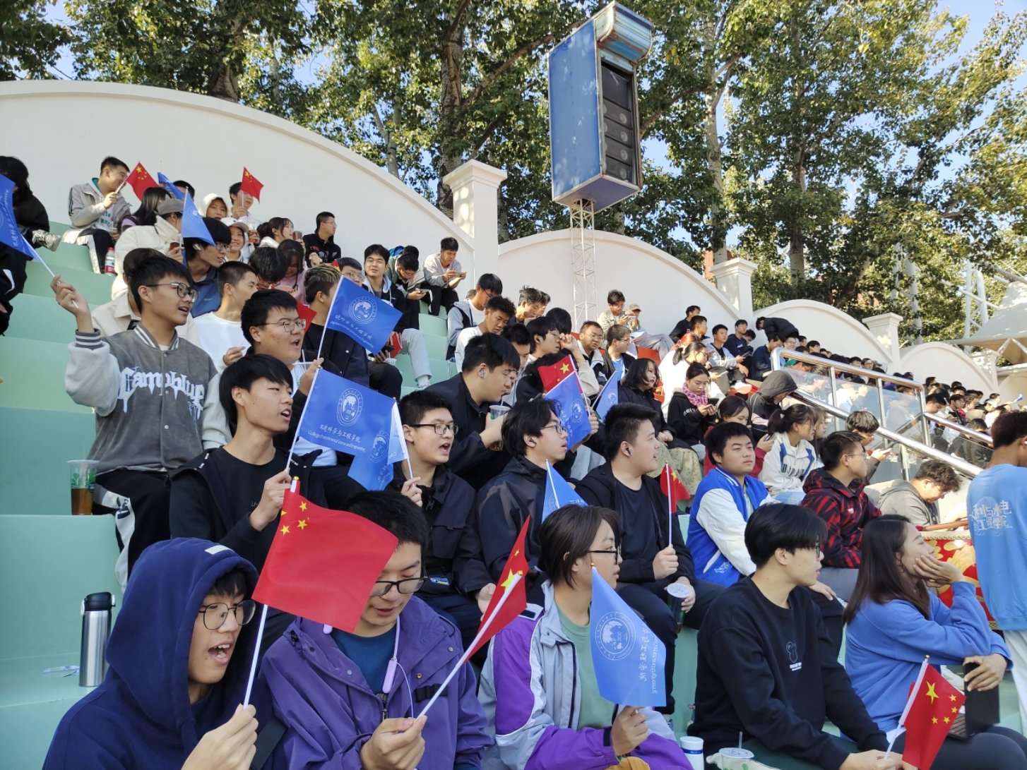观众席的同学们激情地为运动健儿呐喊助威,欢呼声如秋风一般翻涌,展现了环院学子团结一致、昂扬向上的精神面貌!